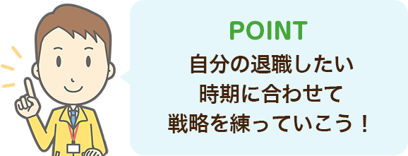 ですので、お仕事探しについてはピーク時にこだわりすぎることなく、ご自身のタイミングを重視しましょう。大切なのは、ご自身が辞めたい時期に向けてどう準備していくかということなのです。